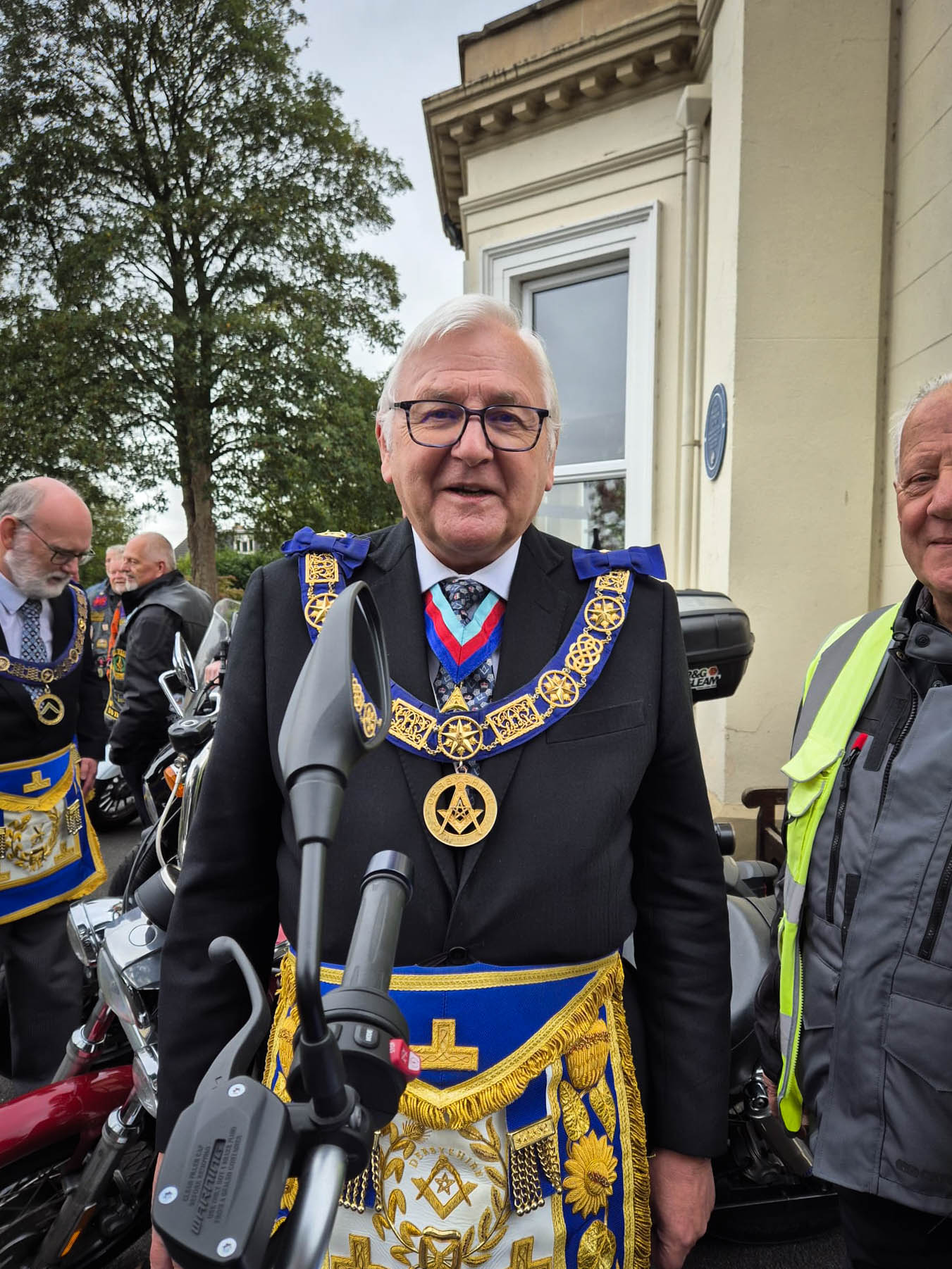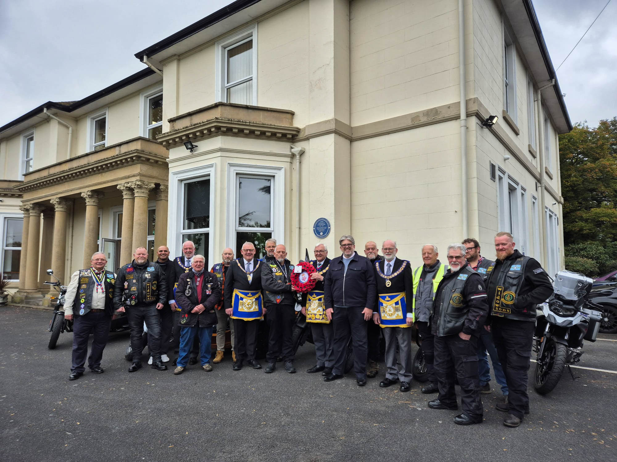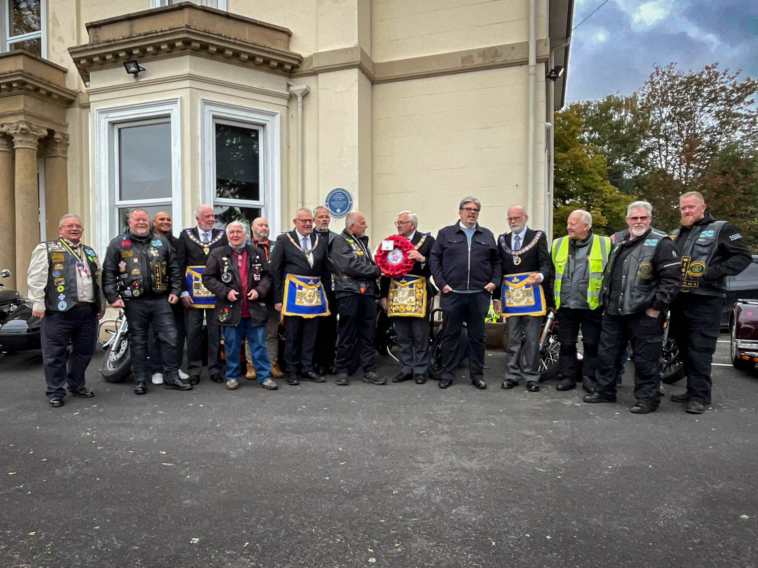 In a poignant act of remembrance and fraternity, the Head of Freemasonry in Derbyshire, Ian Copestake, accompanied by Deputy Martyn Bailey and Assistants Martin Giles and Michael Hitchcock, presented a Memorial Wreath to the Merlin Chapter of the Widows Sons Masonic Bikers Association. Along with other Widows Sons Chapters, Merlin will transport their Province’s wreath to the National Memorial Arboretum on the 25th of October, in preparation for the National Freemasons’ Service of Remembrance organised by UGLE.